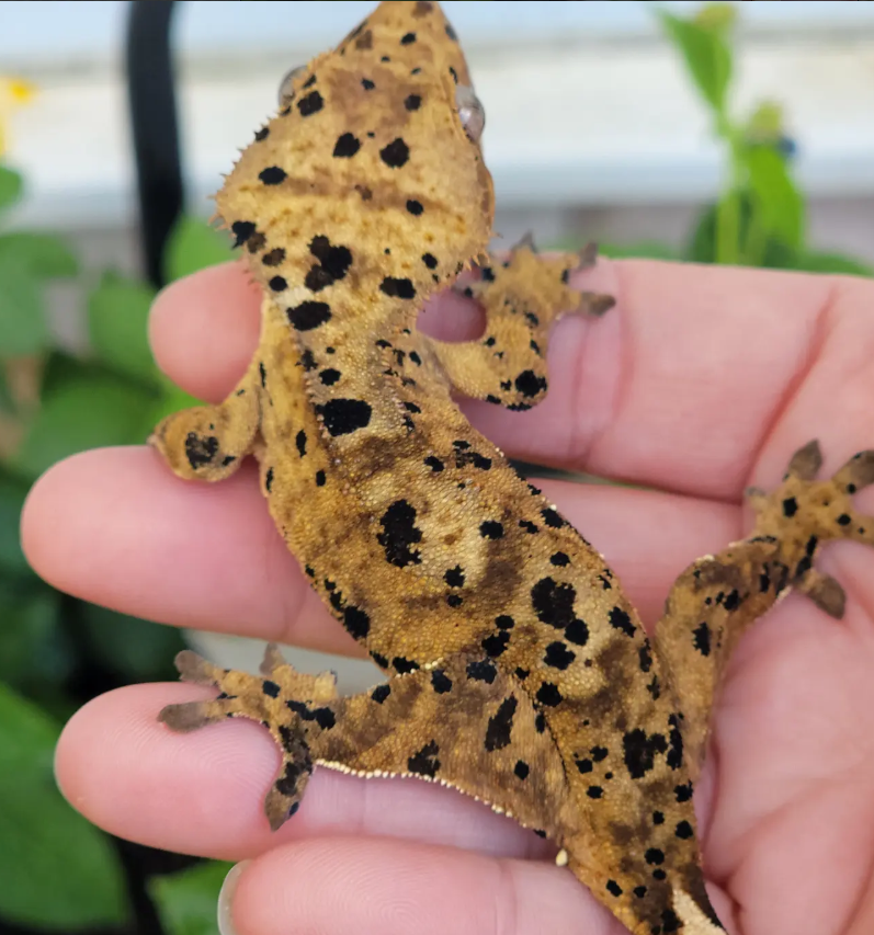 Este gecko ha sido criado en cautividad con alimentación a base de papillas de frutas (Repashy, Pangea) y pequeños grillos como complemento proteico. Se muestra receptivo a la manipulación, aunque como todos los crestados, prefiere ser cogido con suavidad y sin movimientos bruscos.