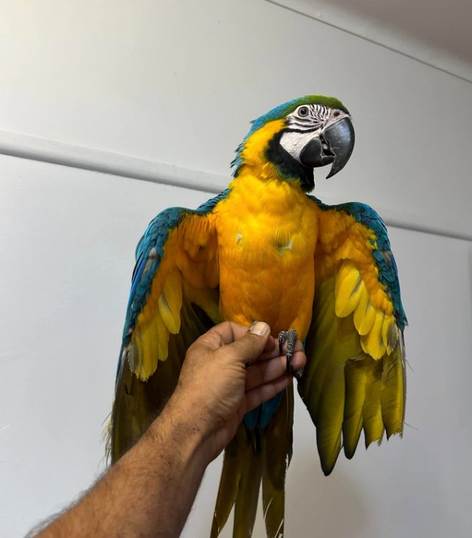 Ordena ya a Lalo, el guacamayo adulto más carismático y entrenado. Si buscas un loro que ya sea un compañero completo, con un amplio vocabulario y habilidades de comportamiento, Lalo es tu mejor elección. Realiza tu pedido ahora.  Lalo es un macho de guacamayo azul y amarillo de 1 año, criado a mano y con una personalidad extrovertida y cómica. 🦜 Habla más de diez palabras y frases cortas, imita risas, ladridos y el sonido del teléfono. Su entrenamiento es avanzado: realiza trucos como «dar la pata», «girar», «volar hacia mí», y se deja manipular completamente (alas, pico, patas) sin resistencia. Es muy leal y busca la atención de sus humanos. Si quieres un loro listo para disfrutar, ordena a Lalo ahora mismo. Incluye jaula grande, documentos y un año de garantía.