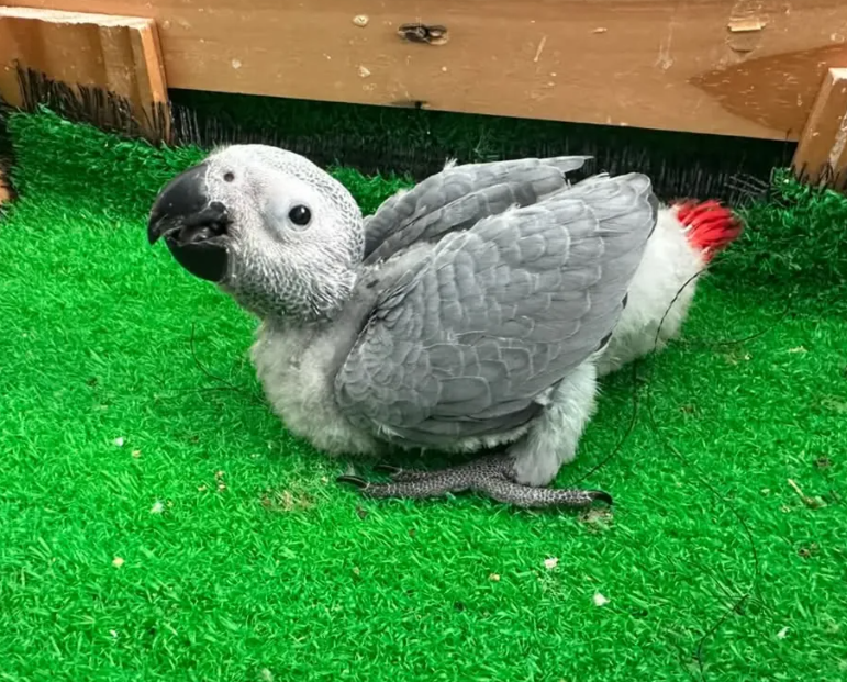 Para adoptar a Loro (hembra de 3 meses), realiza tu pedido ahora mismo. Te guiaremos en el proceso de cría a mano y destete. Indica su nombre en el formulario de compra. 🦜 Loro es una hembra de loro gris africano de tan solo 3 meses, criada a mano con esmero y atención individualizada. 🐣 Es un polluelo extremadamente dócil, que busca el calor humano y se duerme en la mano de su cuidador. Sus ojos son completamente oscuros, señal de su juventud, y su plumaje gris claro aún muestra las plumas de vuelo inmaduras. Es el momento ideal para establecer un vínculo único, ya que está en plena fase de impronta. Se alimenta de papilla de cría tres veces al día y ya muestra interés por los trocitos de fruta. Llega con anilla cerrada, certificado CITES, papilla y un kit completo para su crianza.
