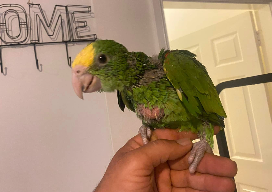 Luna es una hembra de loro amazónico de cabeza amarilla doble de 3 meses, nacida en nuestro criadero especializado en psitácidas de alta gama. Ha sido criada con el método de «cría a mano exclusiva», sin intervención de los padres después de la primera semana, lo que la ha convertido en un ave extremadamente confiada con los humanos. Actualmente, Luna está en pleno proceso de destete: toma papilla dos veces al día y ya picotea con entusiasmo alimentos sólidos como trocitos de manzana, plátano y pipas de calabaza.