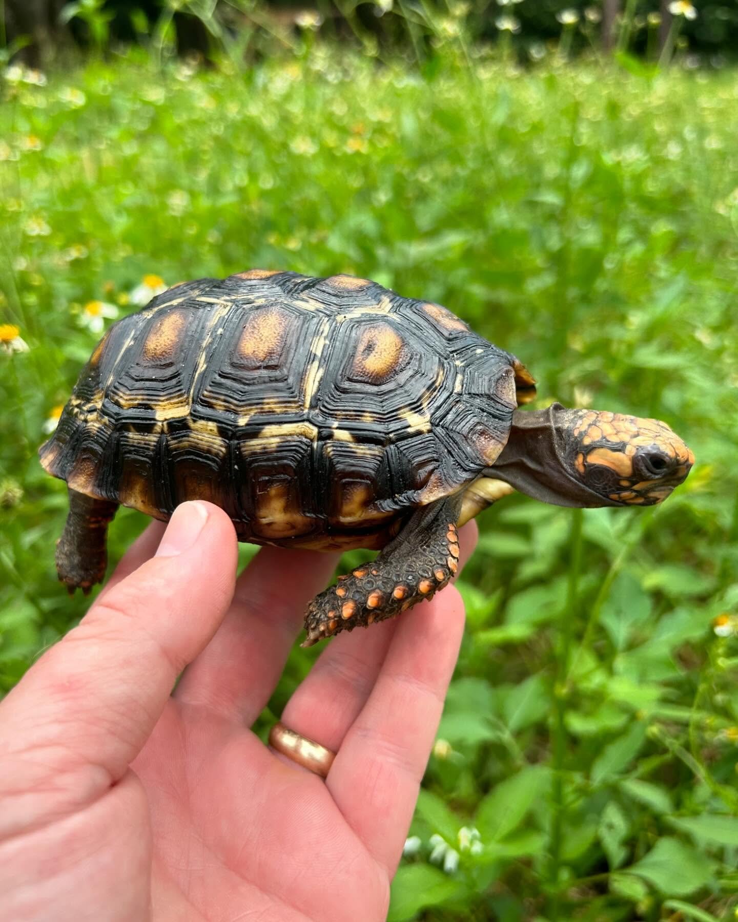 Esta tortuga de patas rojas boliviana (Chelonoidis carbonaria) es un juvenil de unos 3 años, con un caparazón de tonos marrón oscuro y escudos con manchas amarillas, y una cabeza de un rojo intenso muy característico de esta variedad geográfica. Alcanzará un tamaño adulto de unos 35-40 cm, con un carácter activo y curioso. Es una especie muy apreciada por su adaptabilidad a climas templados y su dieta omnívora, que incluye frutas, verduras y pequeñas cantidades de proteína animal.